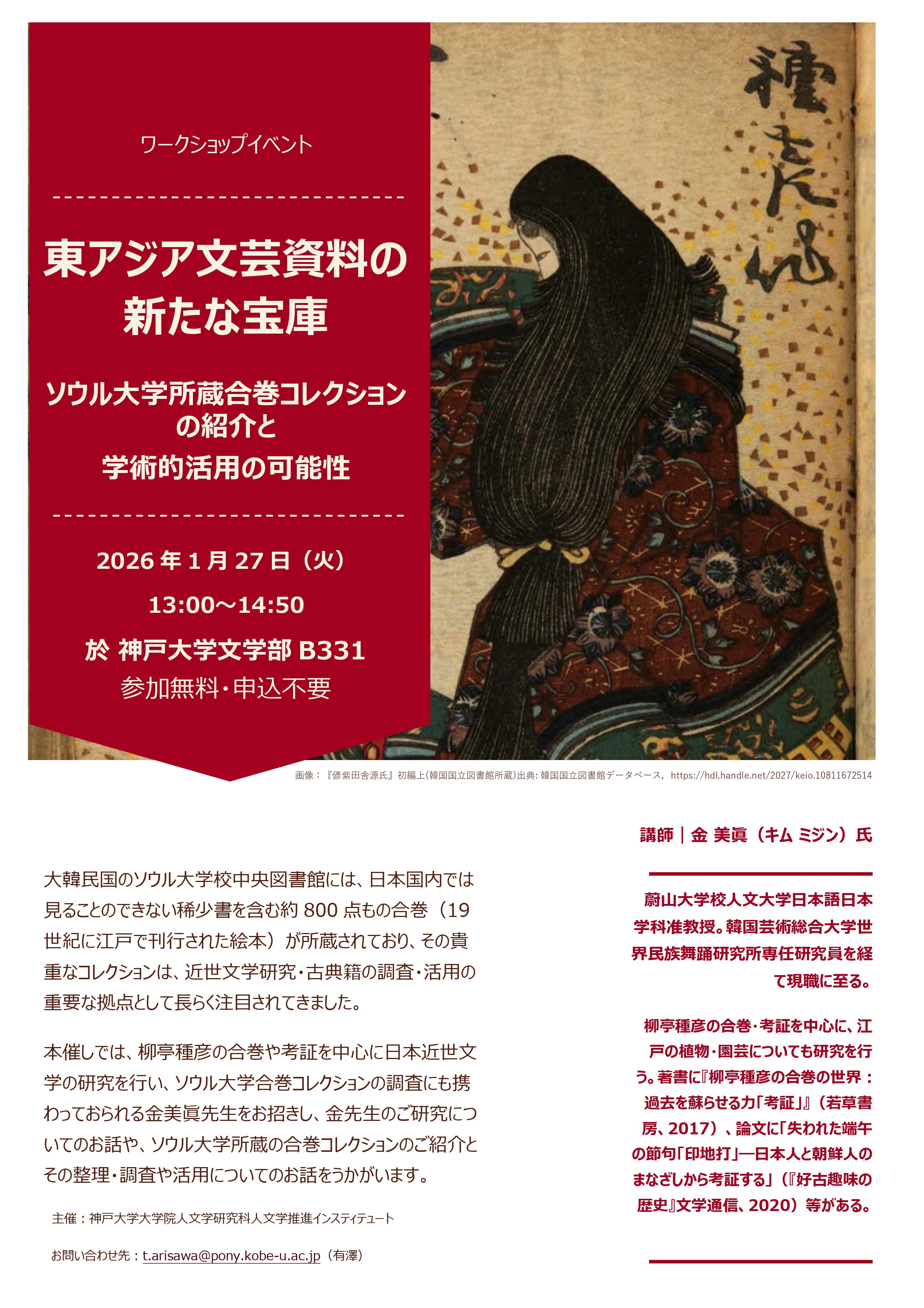 【1月27日(火)開催】ワークショップイベント「東アジア文芸資料の新たな宝庫 ソウル大学所蔵合巻コレクションの紹介と学術的活用の可能性」開催のお知らせ