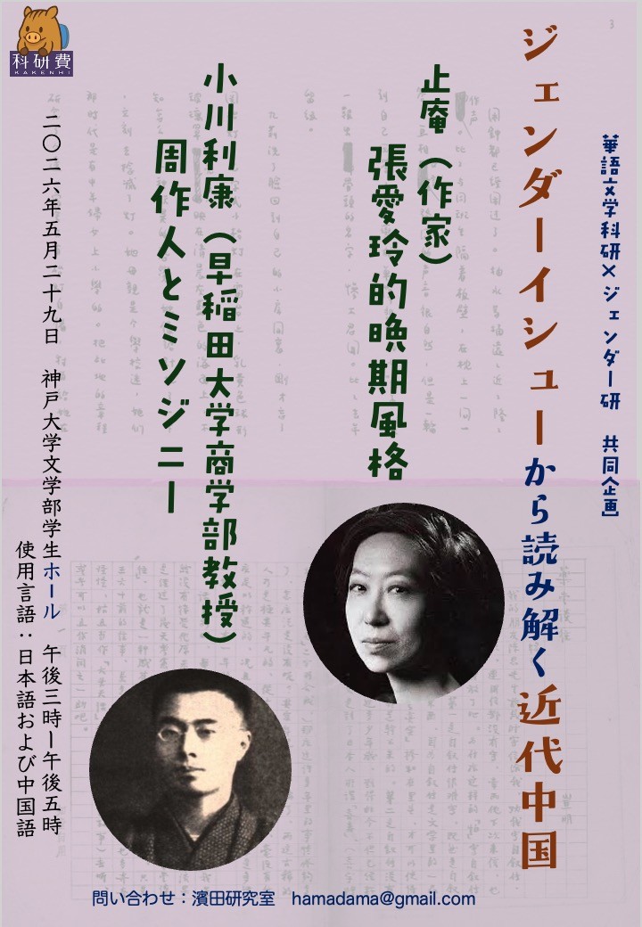 5月29日午後3時より、文学部学生ホールでお二人のゲストを招き、トークイベント「ジェンダーイシューから読み解く近代中国」を開催いたします。詳しくはポスターをご覧ください。